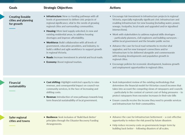 To develop and advocate for policies that invest equitably and sustainably in regional cities to support a growing Victoria.